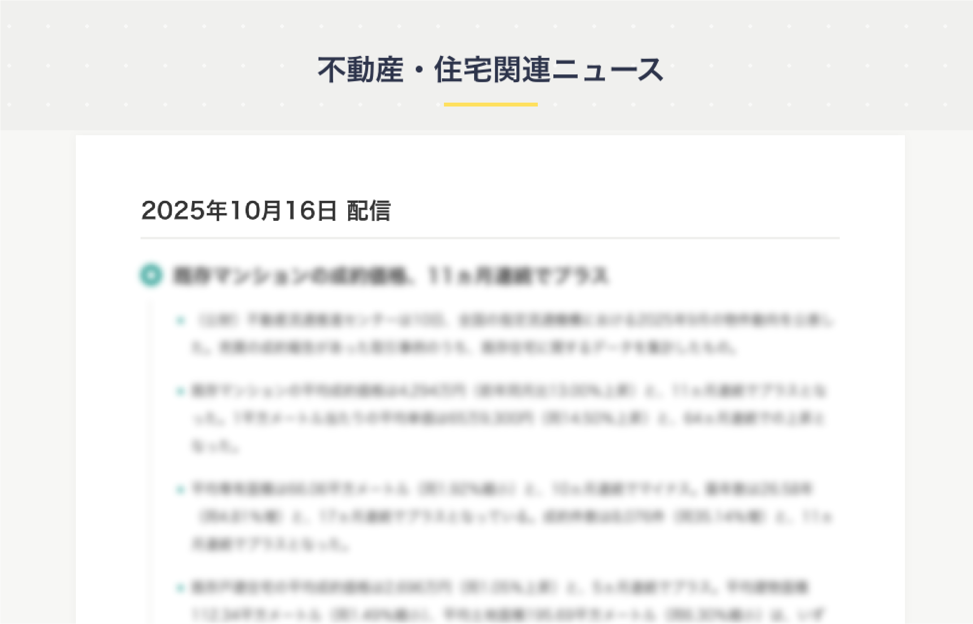 中古マンションの市況動向など、戦略策定の判断材料となる情報を配信しています。